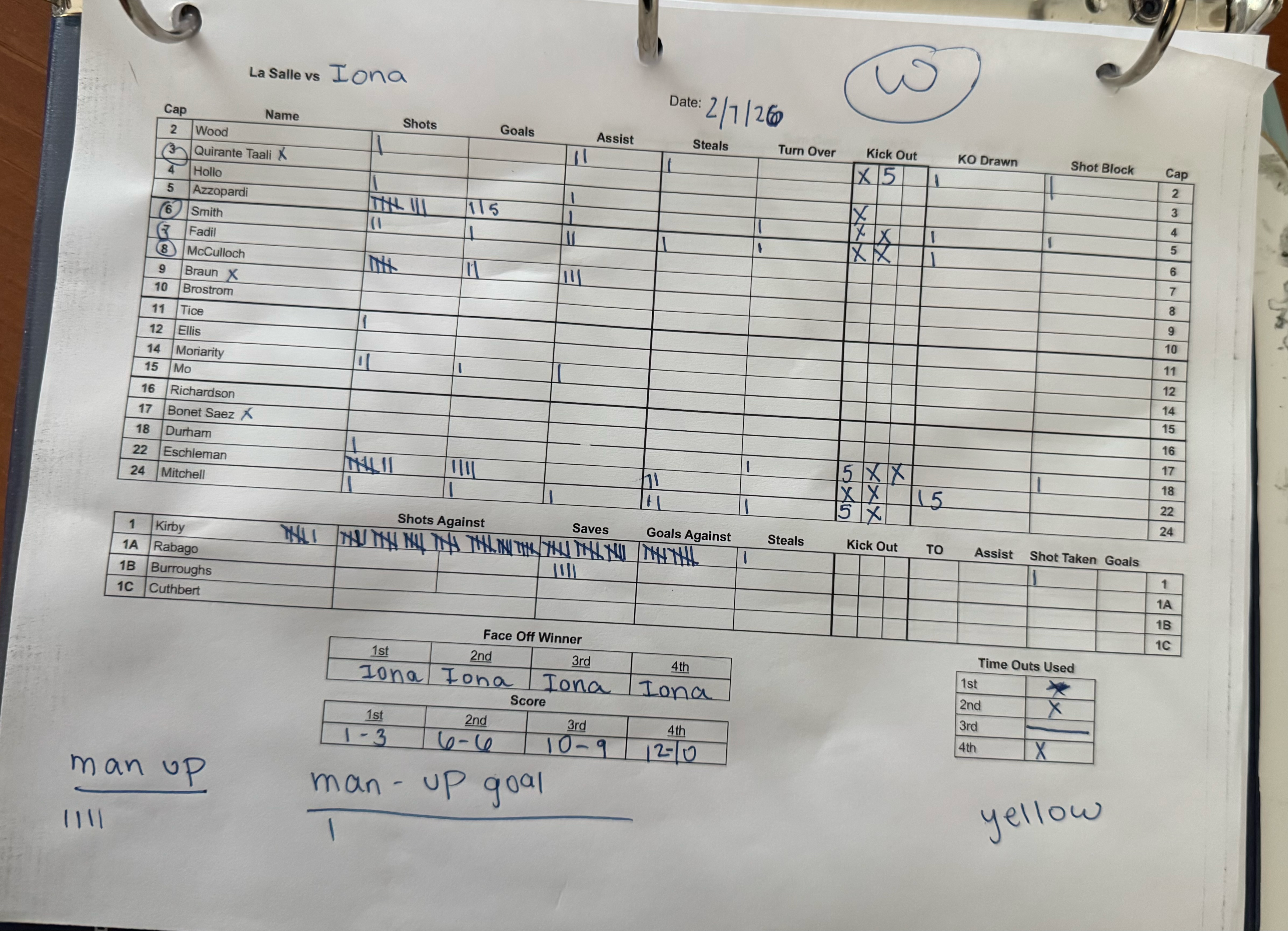 Junior goalkeeper and captain Lily Kirby faced 41 shots and registered 19 saves, which surpassed Emma Gurasich's 18 saves against Wagner in 2023 for the most saves in a single game in program history. Kirby held Iona to just one goal in the final quarter of play as the Gaels went scoreless for the final 7:42 of the contest.